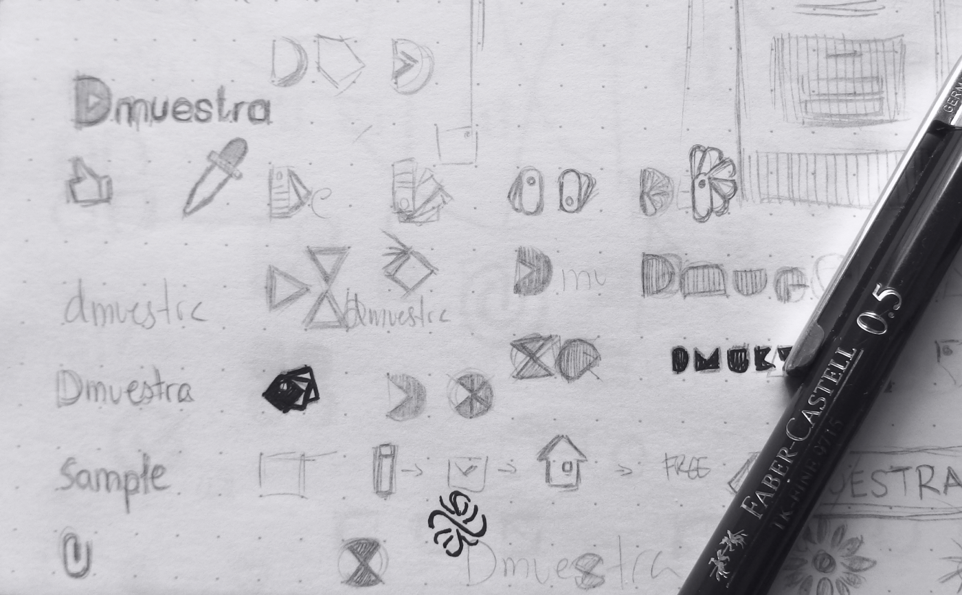 The logo also needed a text, its product's name: Dmuestra. I first started by using an "Adobe Font" (part of "Adobe Fonts" archive) as a foundation which eventually helped me to develop a customed Font style, one that helped me better reflect the actual character and virtues of the product.